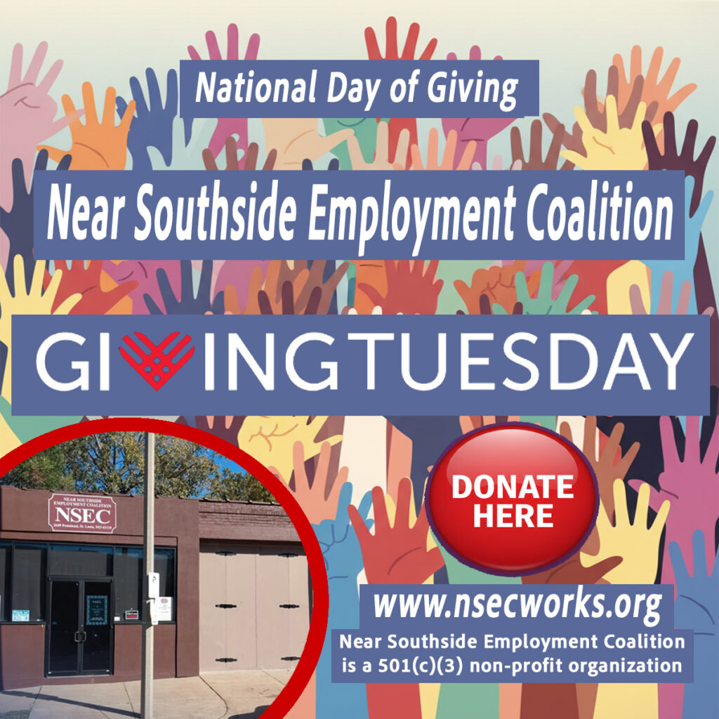 Near Southside Employment Coalition appreciates the support of the STL community in helping us to meet our mission. Your donations allow us to provide the services that assist our clients in finding employment and developing their professional skills!
